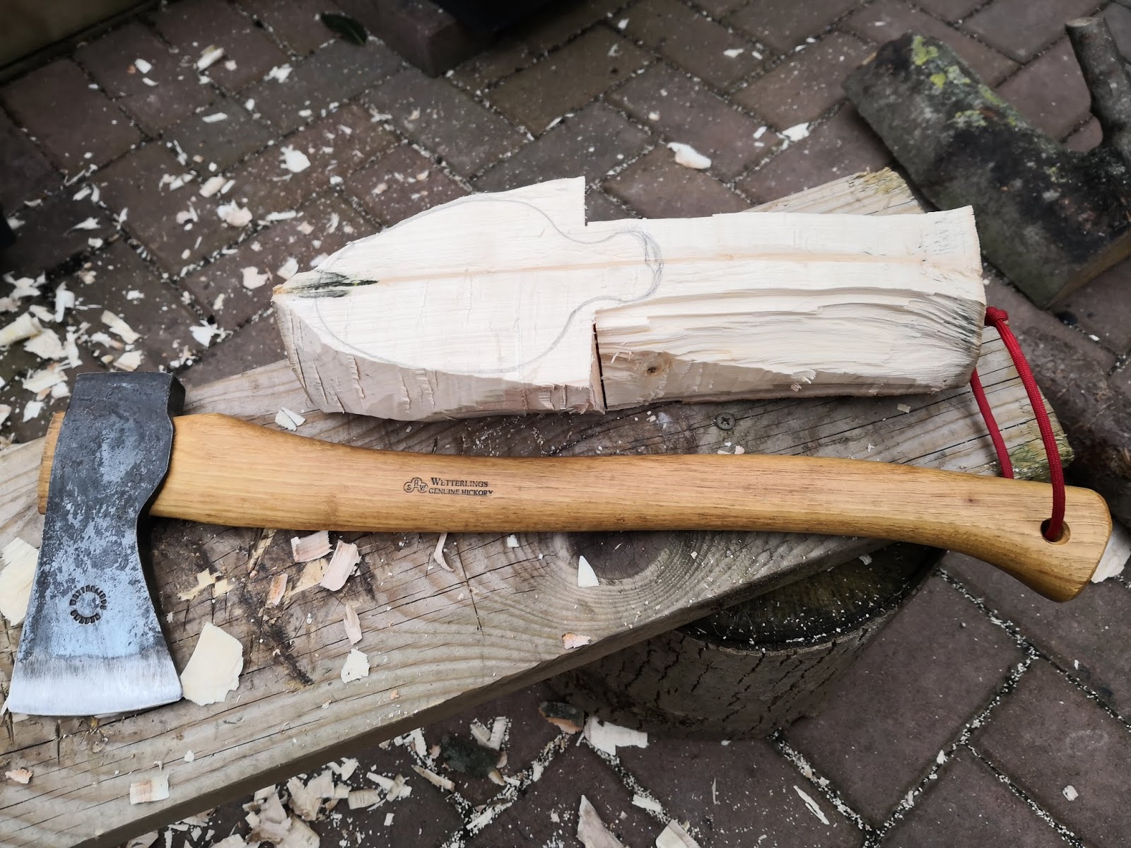- Axe – I actually used two; my Wetterlings Outdoor Axe to do the splitting and bulk waste removal. I then switched to my Gransfors Bruks Small Hatchet because it offered me more control as I got nearer to my markings. To be fair, I was a bit indulgent here as the Wetterlings was more than capable.