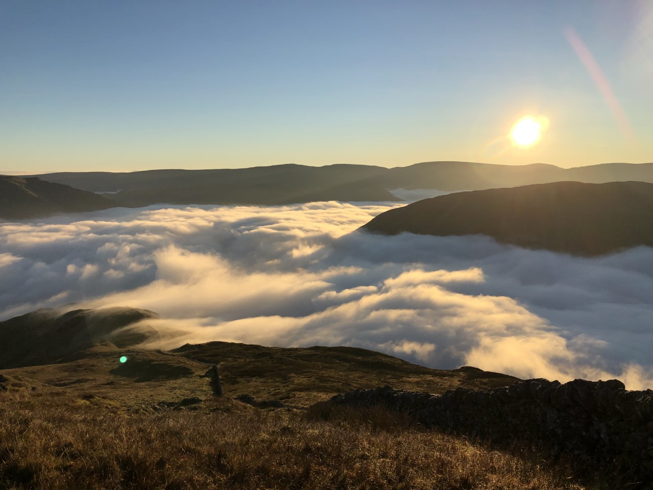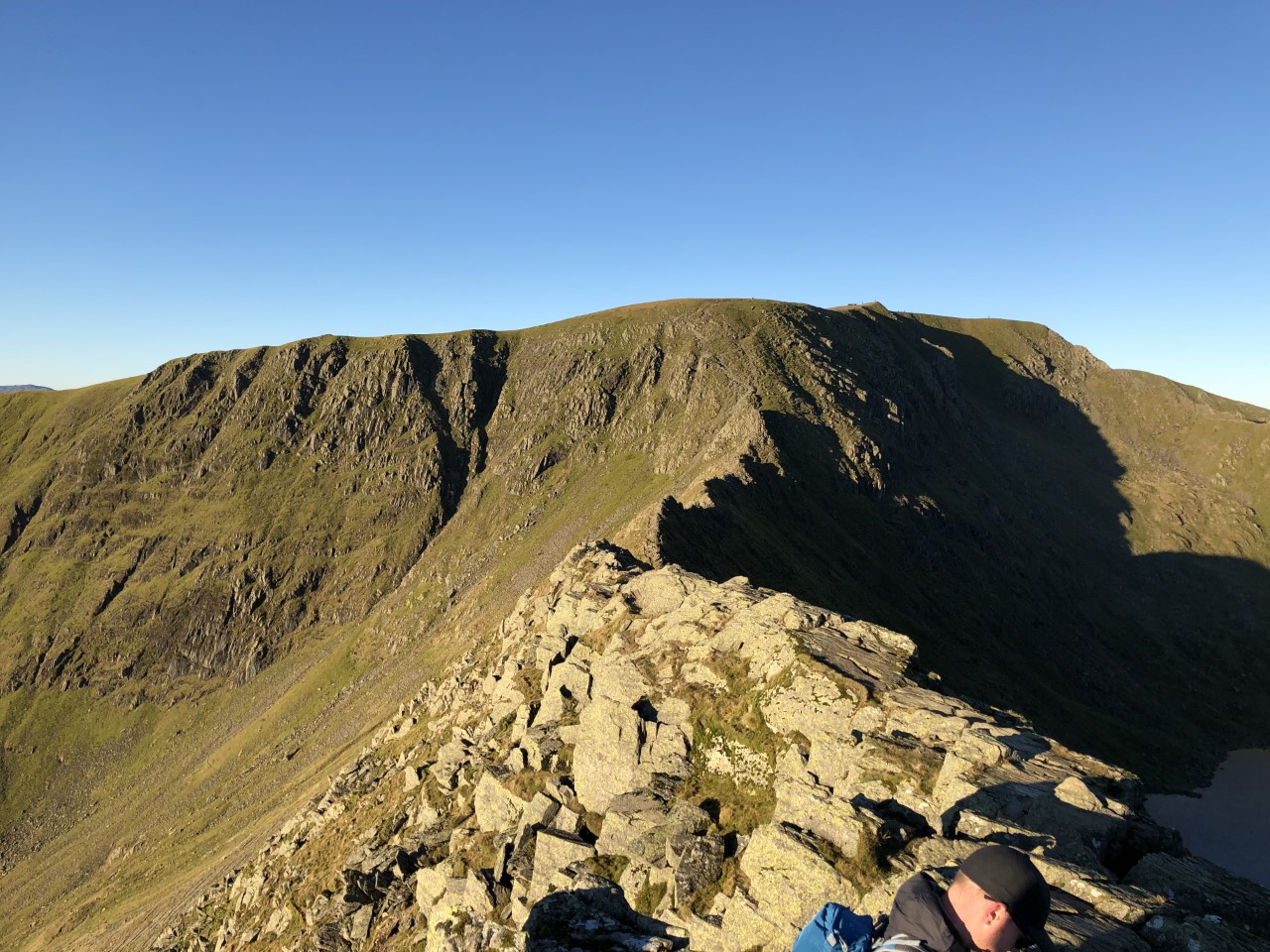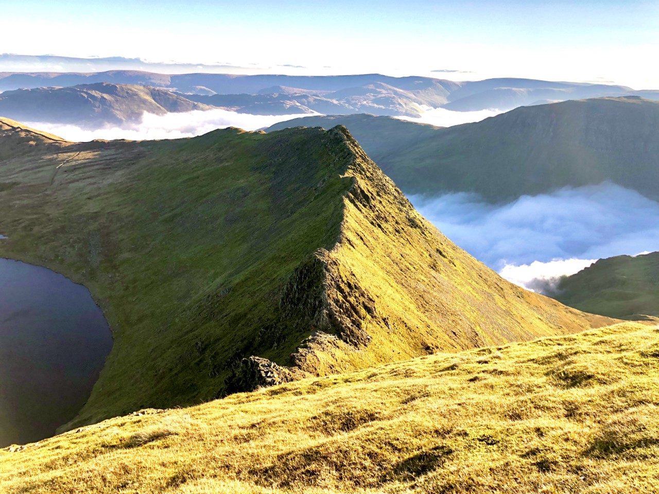Being new to the mountain scene I didn’t really appreciate it as much as I should have done (thinking that every time I climb a mountain it would be this way) but I did know it was something pretty special. With the sun rising above the cloud to clear blue skies, it was easy to feel like we were on top of the world. We headed over Striding edge, my fear of heights seemingly now gone. Standing on a piece of rock with a 100m drop either side of me, I’d never felt so free in my entire life. I knew then that this was home!