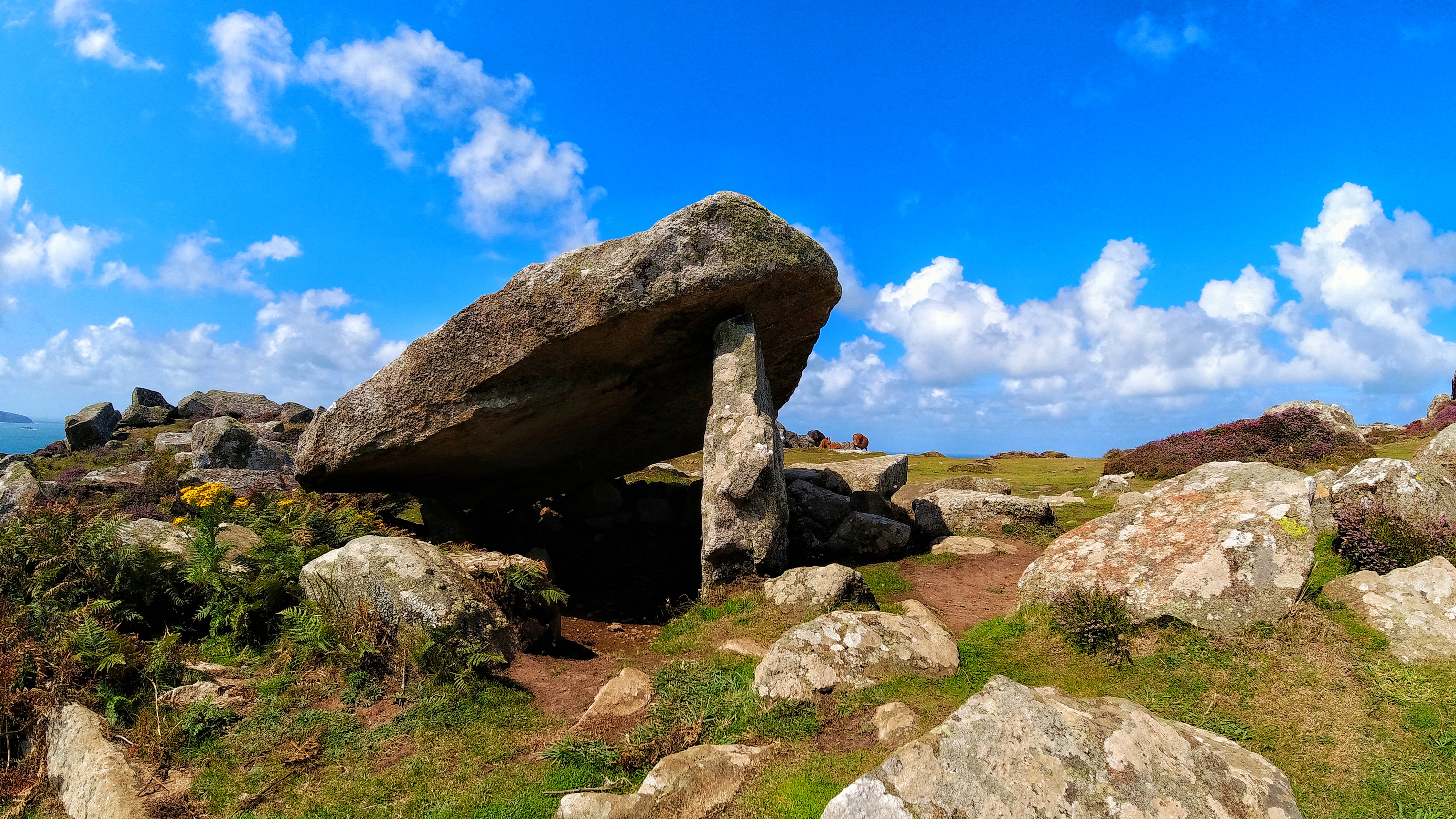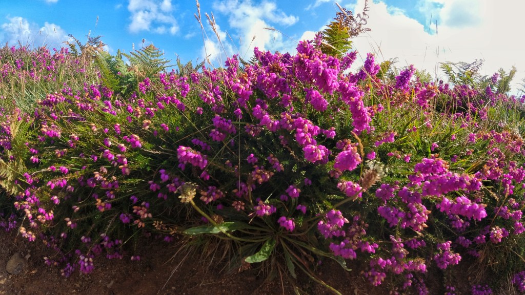 Just off the beach and around the coast line is St David’s Head. St David’s Head marks the divide point of the Celtic and the Irish Sea. If you were to look at a map of Wales, it’s the bit right at the tip of Pac Man’s bottom lip – the western most point of the mainland. The whole area is covered in beautiful wildflowers, heather and heath. A bit like Dartmoor or the New Forest but even closer to the sea, and it’s absolutely steeped in ancient history. Those of you who have been on one of my courses might have been lucky enough to be given some totally random point in the middle of the map to take me to, just because I know there’s supposed to be evidence of an ancient village, or fort or burial ground there, just to find a small dip in the grass or ditch in the woods. But I love that stuff, it’s super cool if not a bit geeky. So, almost central to this spot is Coetan Arthur, a neolithic burial chamber. There’s far more than just a slight dip in the ground here though. What remains is what is believed to be part of the chamber to the much larger passage grave. Ok, it’s a few massive boulders stacked up, but when you think about it, it’s incredibly cool and interesting…it is.