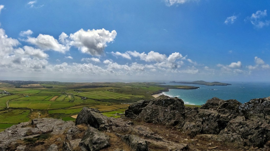 Whitesands and St David’s Head are impressive, sure, but they are both under the watchful eyes of Carn Llidi. Carn Llidi towers over them both and certainly dominates the surrounding area. It’s a slightly intimidating sight from a distance but the closer you get, the friendlier it becomes. I am a big fan of climbing high things in Wales, especially if they are by the sea. Sarah, on the other hand, not so much but is always willing to try. We approached Carn Llidi from the north western side and, once the initial steep climb away from the coast path is done with, all you’re left with is a little scramble to get to the ”summit” (it’s only 181m). As far as remember, I think this could have been Sarah’s first scrambling experience, but she tackled it like a pro. We were fortunate enough that it was a sublime day for weather and the views from Carn Llidi on a day like that are outstanding. Below, as mentioned, you have St David’s Cathedral, Whitesands and St David’s Head as well as Ramsay Island (need to go there at some point) then in the other direction you have Strumble Head and the rest of the coastline snaking away from you. Apparently on a good day you can even see the Wicklow Mountains in Ireland. It was a beautiful day but I didn’t spy the Wicklow Mountains, mostly because I didn’t know you could until afterwards, so I didn’t look. If you use the path that goes up and down Carn Llidi directly from Whitesands, it’s much easier and doesn’t require much of a scramble, but where’s the fun in that?