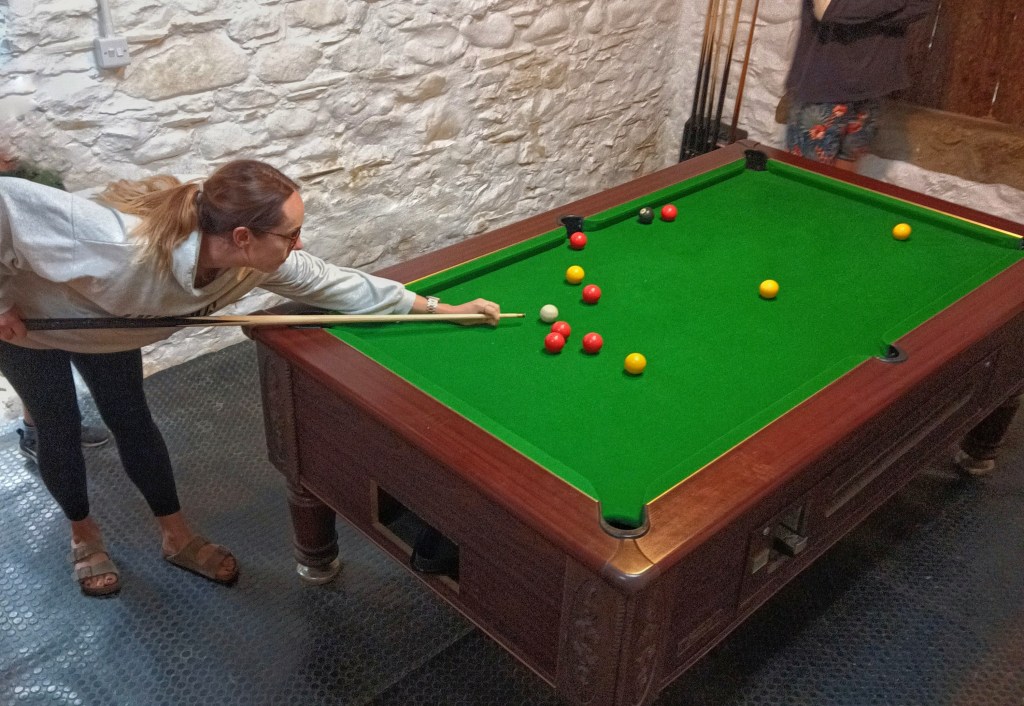 Anyway… back to baked potatoes and pool. Two things I enjoy enormously. One of them I do very badly and the other one I am also quite terrible at too. Now, Into The Sticks has about 7 or 8 pitches, so although it’s a huge area of land, only a small percentage is used for camping, the rest is left for nature (more on that shortly). So because of this, the sense of community at Into The Sticks is fantastic. Everybody is super friendly and, as I understand it, they return each year to stay at the site, meaning their children have the opportunity to reunite with their camping buddies and grow up together. Each Friday there is a pool tournament – wait, let’s start with potatoes… So we walk into the communal barn and find a large Dutch oven filled with perfectly baked potatoes, gallons of beans and under a cloche an absolute mountain of cheese – these are a few of my favourite things, I believe somebody sang at some point in a film. Needless to say I went back for seconds, and no, I’m not ashamed to say my second potato was filled with nothing but cheese, lots and lots of cheese. I have a feeling I might be becoming slightly dairy intolerent these days though, so maybe I should be ashamed… I don’t know. Then it was time for the pool tournament. Jo created a game (I assumed Jo was the creator of this game but I’m not sure) using a deck of cards. Each person has four lives and you take it in turns to take your shot, if you don’t pot a ball you lose a life and last person standing wins. I had the Jacks from the deck, so I was 11th to take a go in each round. Sarah was 10th. Sarah was actually quite paranoid about not only just having a barn of people watching her but mostly because she has a…unique way of holding a pool cue – or at least positioning her balancing/bridging hand (the one on the table). Most normal people would use the normal pool/snooker shape to balance the cue across the hand for aiming, but the only way I can describe the way Sarah does it is by saying it’s incredibly similar to the ‘sex’ mime, putting the cue through the ‘O’ shape of your thumb and forefinger. Just a warning here, I’ve tried to find an example of the ‘sex finger mime’ on google and I can’t say many of the results are at all what I was expecting… Anyway, I digress once more…Needless to say, rapidly and early on in the tournament we lost our lives and were out of the game. I don’t know if that was anything to do with the bottle of wine we polished off beforehand, but I’ll blame that for now. We had fun nonetheless and watched right to the end when the winner actually donated his winnings (a pack of marshmallows) to the runner up and their family. What a bloody legend.
